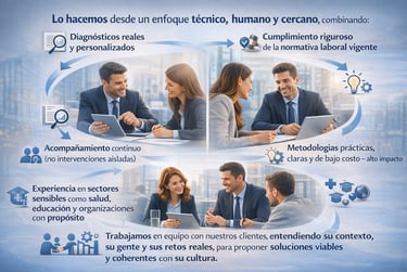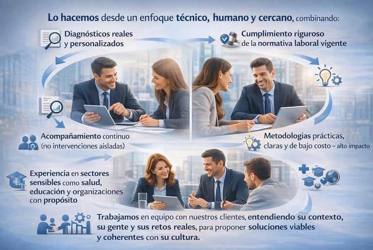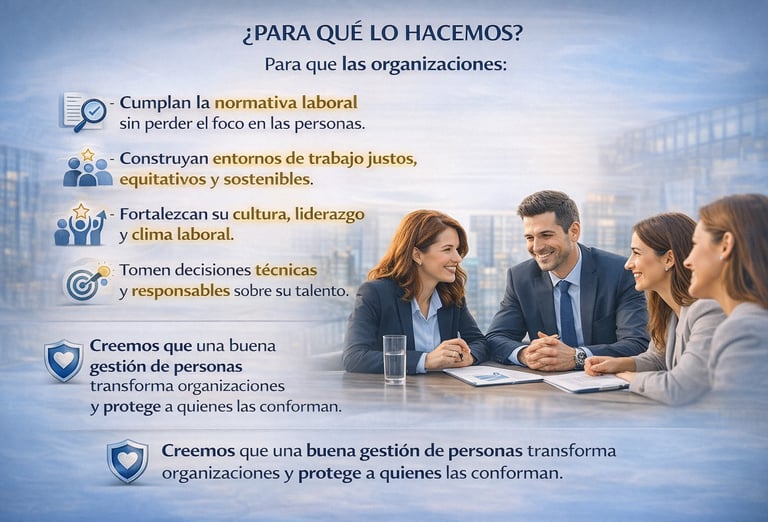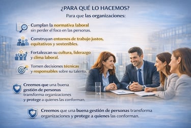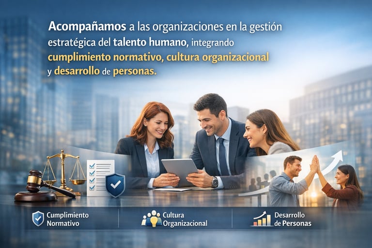 Acompañamos a las organizaciones en la gestión estratégica del talento humano, integrando cumplimiento normativo, cultura organizacional y desarrollo de personas.